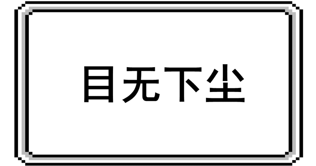 目无下尘(mù wú xià chén) 意味:(下の者には目もくれない)傲慢な態度 下尘は直訳すると「下の塵(ほこり)」となるが、身分や地位の低い人、世俗の人間、下々という意味。人間のことを塵と表現するなんてひどいと思うが、仏教用語に俗塵(ぞくじん)... -
