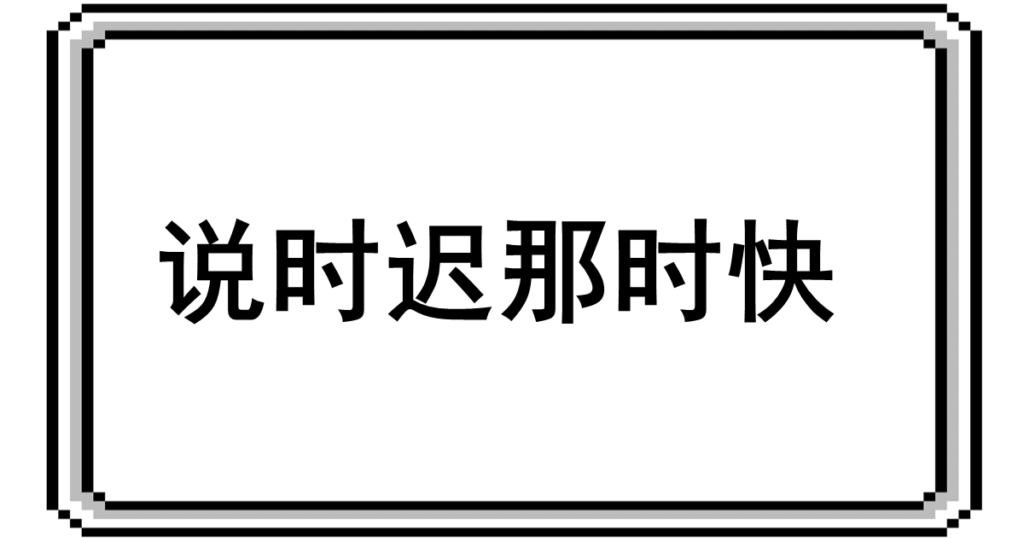 说时迟那时快(shuō shí chí nà shí kuài) 意味:あっという間に、またたく間に 字面通りに解釈すると「言っている間は遅く、あの時は速かった」となる。日本語にすると少し分かりづらいが、少し意味は違うが似たような日本語表現には「言うが早いか」が... -