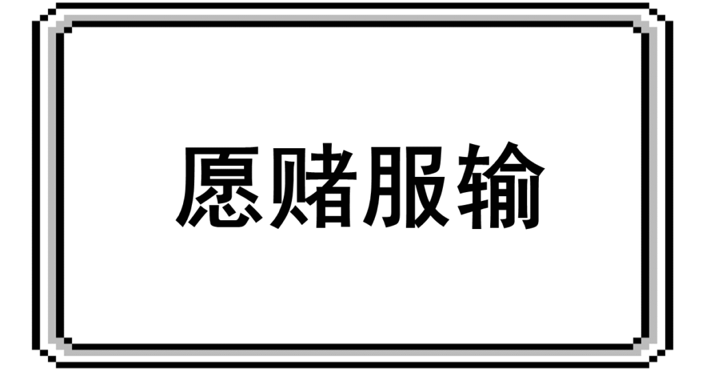 愿赌服输(yuàn dǔ fú shū) 意味:(賭けをしたんだから、負けたからには)約束守ってよね 愿は愿意の愿、つまり自分から進んで~するという意味。赌は文字通り「賭け」。服输は負けに従う、つまり負けを認めるという意味。 負けた方が○○をする、というシ... -
