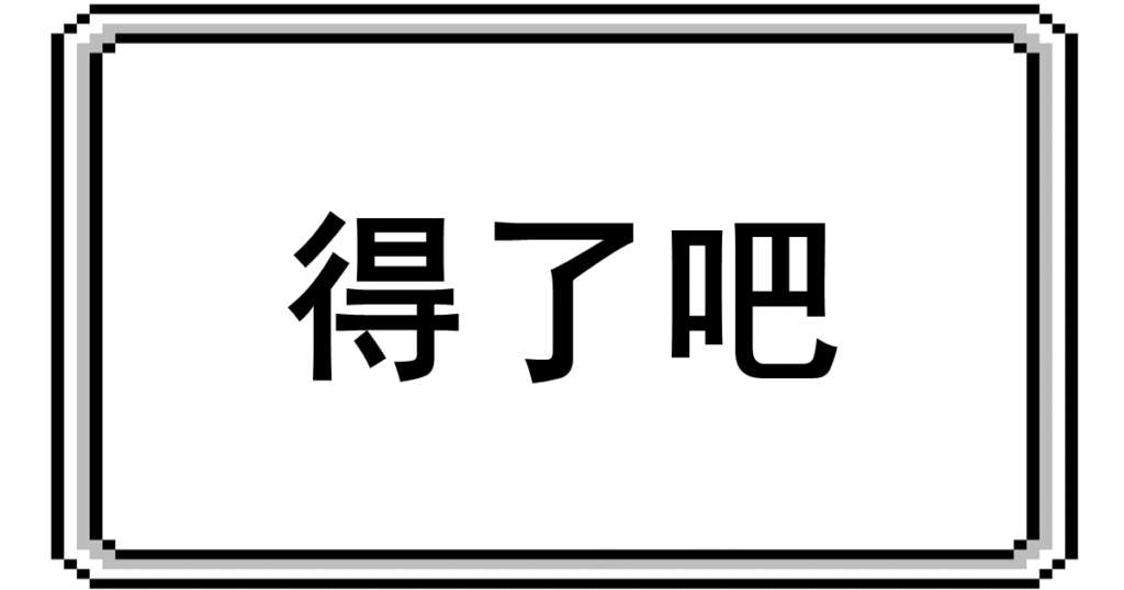 得了吧(dé le ba) 意味:ちょっと、いい加減にしてよ、嘘でしょ、もういい HiNativeによると、医者なのに給料が少ないとか、ロシア人なのにロシア語がうまくないといった話に対してツッコむために使うとのこと。【得了吧】とはどういう意味ですか? - 中... -