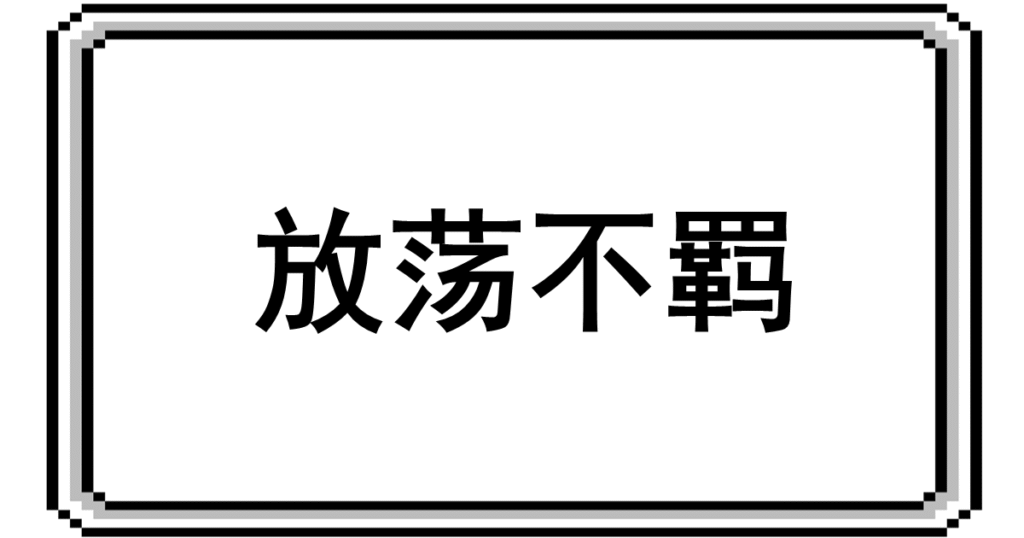 放荡不羁(fàng dàng bù jī) 意味:勝手気ままで始末に負えない 放荡はやりたい放題、したいままにするという意味、不羁は礼儀作法に束縛されないという意味の他、奔放で小さくまとまらないというポジティブな意味もある。羁は馬にはめるくつわの意味で、... -