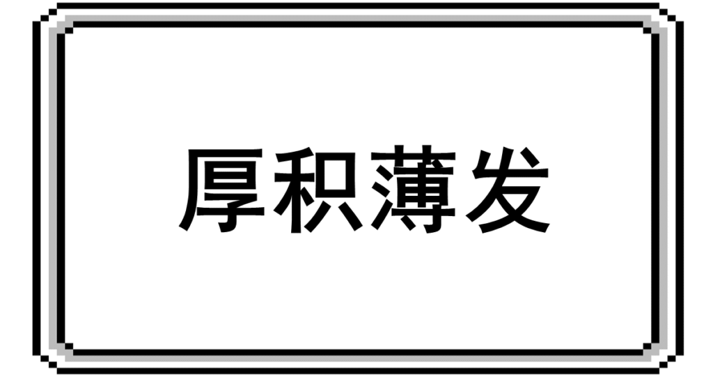 厚积薄发(hòu jī bó fā) 意味:長年努力を積み重ねてきた 大修館書店の中日大辞典によると「巨万の富をためながらちびりちびりと使う」という意味らしいが、実際の中国語ではお金ではなく努力に対して、ポジティブな意味合いで使うことが多い。文字通り... -